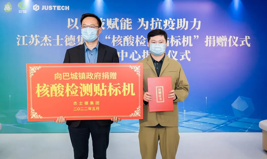 Donation ceremony of “Labelling Equipment for Nucleic Acid Testing Sampling Tubes” and inauguration ceremony of the innovation center was held on Kunshan campus of Justech Group on 1st May.