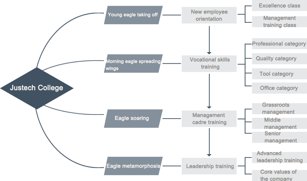 JUSTECH College is founded for young aggressive people who love learning and sharing by the company with tailor-made training programs for each stage of the employee, so as to provide employees with a broad prospect and help them achieve personal value.