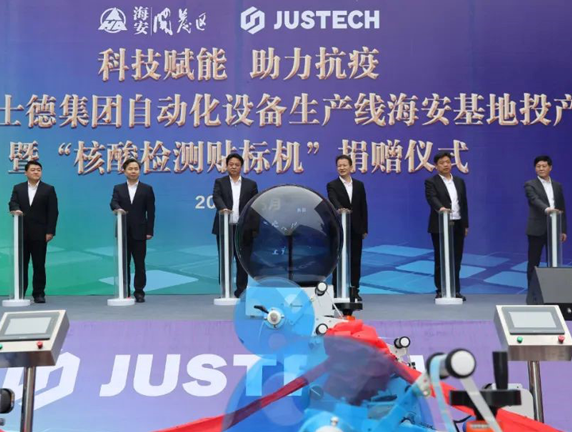 2022年5月13日上午8時(shí)30分,杰士德集團(tuán)自動化設(shè)備生產(chǎn)線海安基地投產(chǎn)暨“核酸檢測貼標(biāo)機(jī)”捐贈儀式在海安隆重舉行。 中共...