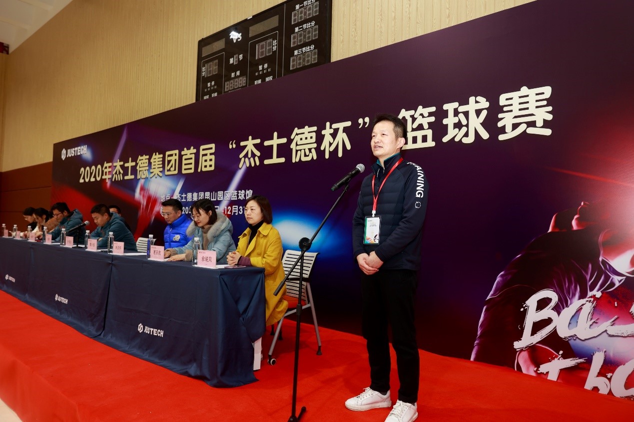 隨后,魏副校長代表杰士德集團創(chuàng)始人、董事長、杰士德大學校長景余祥致開幕詞。他強調(diào),杰士德集團始終堅持以客戶為中心,以奮斗者為本,始終踐行“極致服務(wù),創(chuàng)造客戶價值;持續(xù)奮斗,實現(xiàn)利益共享”的核心價值觀,大力營造有溫度、嚴要求、持續(xù)奮斗的組織氛圍。他還表示,景余祥董事長一直秉持著“做世界一流的智能制造企業(yè)”和“給員工最好生活”的初心,希望在本次首屆“杰士德杯”籃球賽上,所有運動員能夠團結(jié)拼搏、釋放自我、尊重對手、尊重裁判,給集團全體員工獻上一場力與美的視覺盛宴。