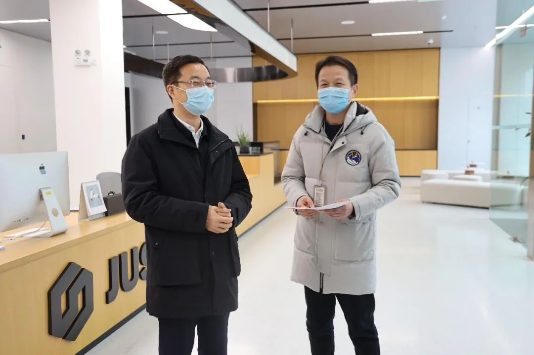 2022年1月25日,昆山市委周偉書記在巴城鎮(zhèn)黨委石建剛書記等領(lǐng)導(dǎo)陪同下蒞臨杰士德集團(tuán)昆山園區(qū),開(kāi)展企業(yè)疫情防控、安全生產(chǎn)工作調(diào)研,了解企業(yè)生產(chǎn)經(jīng)營(yíng)情況,并向企業(yè)和員工送來(lái)新春祝福。