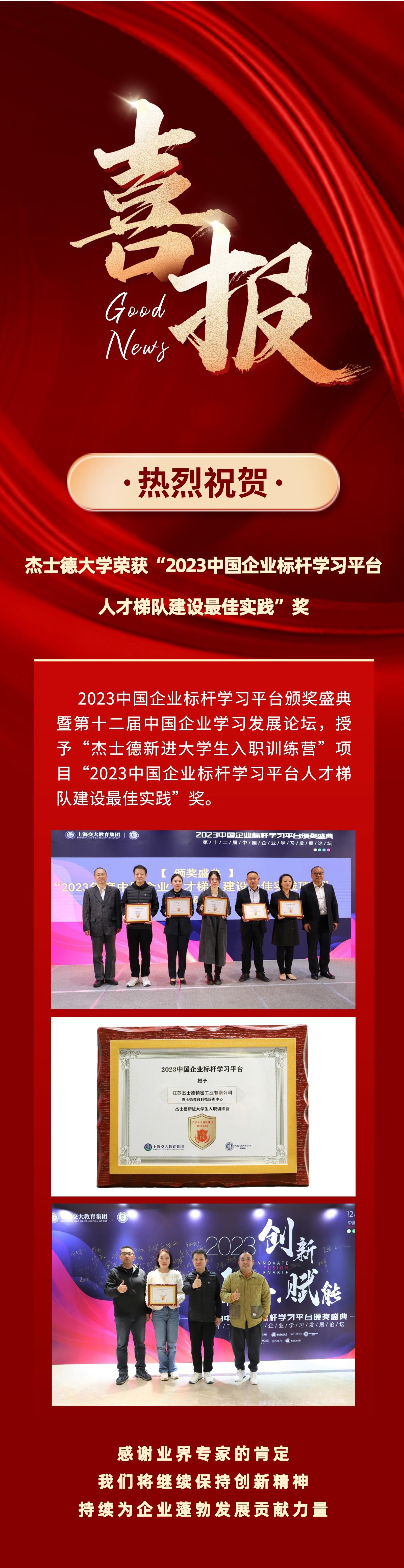 喜報(bào) | 熱烈祝賀杰士德大學(xué)榮獲“2023中國(guó)企業(yè)標(biāo)桿學(xué)習(xí)平臺(tái)人才梯隊(duì)建設(shè)最佳實(shí)踐”獎(jiǎng)項(xiàng)