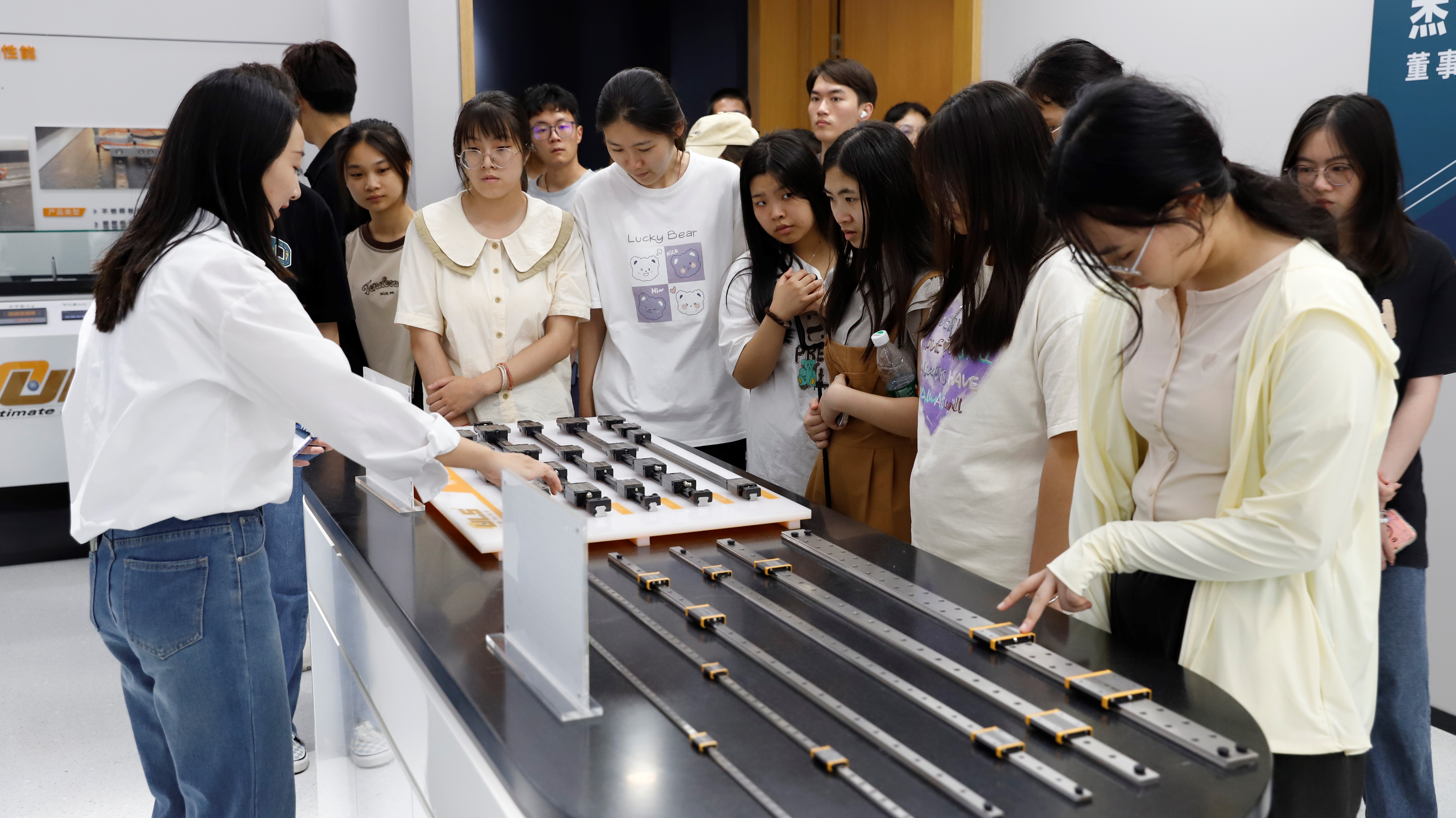 在杰士德創(chuàng)新中心展廳,同學(xué)們跟隨工業(yè)時代的發(fā)展之路,親身體驗杰士德集團18年來發(fā)展歷程取得的成就,感嘆于智能制造發(fā)展的美好未來。