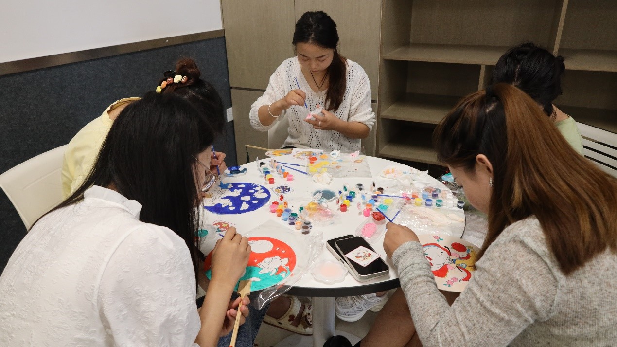 團(tuán)扇,又稱宮扇、紈扇,代表團(tuán)圓友善、吉祥如意。大家沉浸在創(chuàng)造的樂(lè)趣中,精心調(diào)制出自己喜歡的顏色,在團(tuán)扇上自由創(chuàng)作。隨著時(shí)間的遞進(jìn),一柄柄或清新淡雅,或萌動(dòng)有趣、活力四射的團(tuán)扇被創(chuàng)作出來(lái),寧?kù)o美妙的畫(huà)面彰顯了杰士德人對(duì)傳統(tǒng)文化的熱愛(ài),現(xiàn)場(chǎng)氛圍愈發(fā)溫馨而熱烈。
