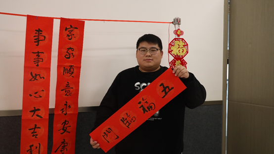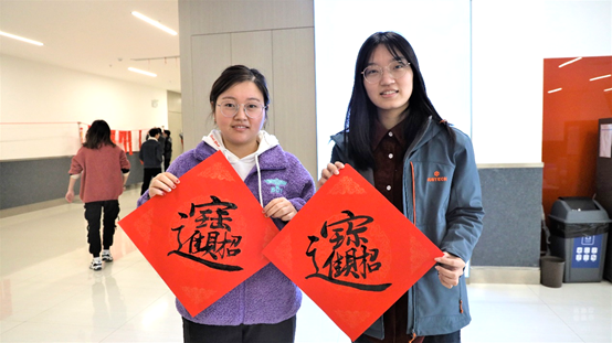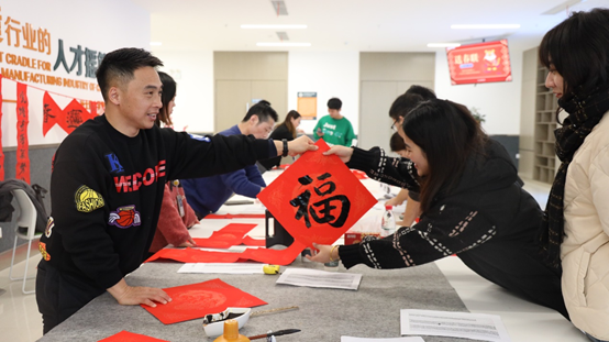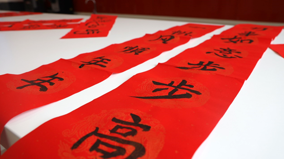 工整的春聯(lián)和嶄新的福字?jǐn)[放整齊,伴著宜人的墨香,一副副寓意吉祥、氣韻生動(dòng)的書法作品躍然紙上。行書、隸書、楷書,風(fēng)格迥異的福字、對(duì)聯(lián)映紅了現(xiàn)場同事笑逐顏開的面龐,在寒冷的冬日里為杰士德員工們帶來了暖暖春意。