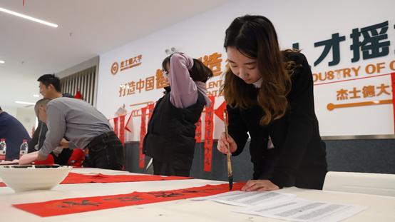 人逢盛世精神爽,年根歲末送春聯(lián)。春聯(lián),又稱 “對(duì)聯(lián)”,貼春聯(lián)是中華民族過年的重要習(xí)俗。它以對(duì)仗工整、簡潔精巧的文字來描繪春節(jié)的美好形象,抒發(fā)中國勞動(dòng)人民們除災(zāi)辟邪、迎祥納福的美好愿望。2022年1月21日,農(nóng)歷臘月十九,杰士德大學(xué)組織開展了“春聯(lián)送祝福,墨香暖人心”的新春主題活動(dòng),為杰士德全體員工送上了新年第一份美好祝福。