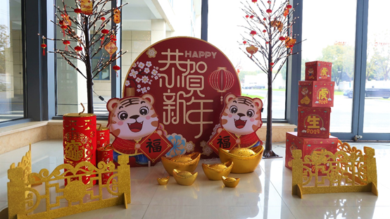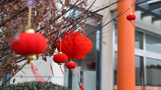 在給員工春聯(lián)送祝福的同時(shí),昆山總部園區(qū)的新春氛圍布置也成為冬日中一抹喜氣熱鬧的亮色。為了讓員工們感受一個(gè)美麗、祥和、喜慶的春節(jié),杰士德大學(xué)企業(yè)文化部于1月17日便開始在園區(qū)裝飾布置,誠意的新春橫幅、火紅喜慶的燈籠、喜氣洋洋的新春美陳造景、隨處可見的手寫福字,讓新春的儀式感、氛圍感拉滿。夜晚時(shí)分,華燈初上,高高掛起的紅燈籠鮮艷奪目、格外喜慶,將整個(gè)杰士德裝扮得無比靚麗。