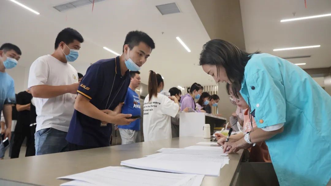 在上門體檢開始前,杰士德大學(xué)工作人員根據(jù)實際情況為各部門同事安排了合理的體檢批次,以期減少員工扎堆體檢的現(xiàn)象。同時,工作人員也會提前告知注意事項、組織體檢同事遵守防疫準(zhǔn)則、進(jìn)行現(xiàn)場協(xié)調(diào)引導(dǎo)排練……這些充分細(xì)致的工作為本次體檢工作提供充分的保障?;顒赢?dāng)天,員工按照體檢安排有序來到現(xiàn)場簽到,自覺耐心地排隊領(lǐng)取體檢表格,并在工作人員的引導(dǎo)下進(jìn)行逐項檢查。