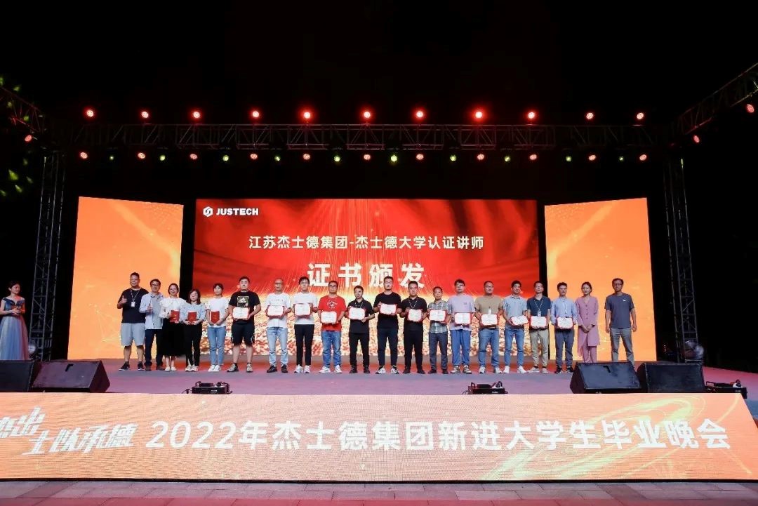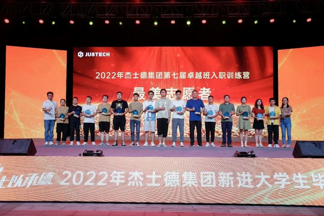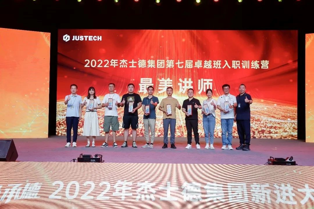 整場(chǎng)匯演在全體演職人員共同唱響的杰士德集團(tuán)司歌——《在你身旁》中落下帷幕,這也標(biāo)志著為期一個(gè)月的2022年杰士德集團(tuán)第七屆卓越班入職訓(xùn)練營(yíng)順利落幕。作為“人才強(qiáng)企”戰(zhàn)略中極為重要的一環(huán),在集團(tuán)大力投入、高管傾心關(guān)注之下,第七屆卓越班入職訓(xùn)練營(yíng)在專業(yè)精心的設(shè)計(jì)與有力有序的執(zhí)行中,順利推進(jìn)。通過(guò)一個(gè)月的深入培訓(xùn),新進(jìn)大學(xué)生們對(duì)集團(tuán)的發(fā)展藍(lán)圖、企業(yè)文化、行業(yè)前景、產(chǎn)品知識(shí)、工作方法等方面有了全新的認(rèn)知,在工作心態(tài)、個(gè)人發(fā)展規(guī)劃、團(tuán)隊(duì)成長(zhǎng)上獲得了長(zhǎng)足的進(jìn)步,并在《以忠誠(chéng)之心走好人生第一步》《走進(jìn)職場(chǎng),學(xué)會(huì)成長(zhǎng)》《全球化下的國(guó)際經(jīng)濟(jì)發(fā)展現(xiàn)狀與企業(yè)國(guó)際化戰(zhàn)略選擇》等課程的加持下,拓寬視野,提升格局。在培訓(xùn)過(guò)程中,杰士德大學(xué)還通過(guò)開(kāi)展各類文化活動(dòng)、拓展項(xiàng)目、技能競(jìng)賽等,幫助新同事快速融入團(tuán)隊(duì),深入了解自己,讓彼此成為互相信賴的伙伴,并在不知不覺(jué)中與集團(tuán)緊密聯(lián)系,成為榮辱與共的命運(yùn)共同體。在培訓(xùn)考核中,共有13名學(xué)員脫穎而出,被評(píng)為第七屆卓越班優(yōu)秀學(xué)員,景董事長(zhǎng)、魏校長(zhǎng)為他們頒發(fā)了榮譽(yù)證書(shū)。為了肯定他們?cè)谂嘤?xùn)過(guò)程中展現(xiàn)努力奮進(jìn)以及強(qiáng)烈的目標(biāo)感,同時(shí)期待他們?cè)谝院蟮墓ぷ髦?,繼續(xù)堅(jiān)定目標(biāo),保持昂揚(yáng)的工作斗志,與所有的新進(jìn)大學(xué)生們一起奮力拼搏、實(shí)現(xiàn)價(jià)值,景董事長(zhǎng)現(xiàn)場(chǎng)宣布為他們加薪并提前轉(zhuǎn)正,即日生效。