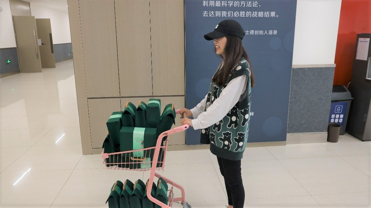 3月8日下午一點開始,根據(jù)時間分配,各部門派出代表逐一前來領(lǐng)取她們的節(jié)日福利。禮盒發(fā)放現(xiàn)場熱熱鬧鬧,大家的喜悅溢于言表,許多人迫不及待地想要一睹禮品真容。一份小小的禮盒傳遞的不僅是節(jié)日的溫暖與感動,更代表著集團對全體女性員工和女家屬們的關(guān)注與關(guān)懷。
