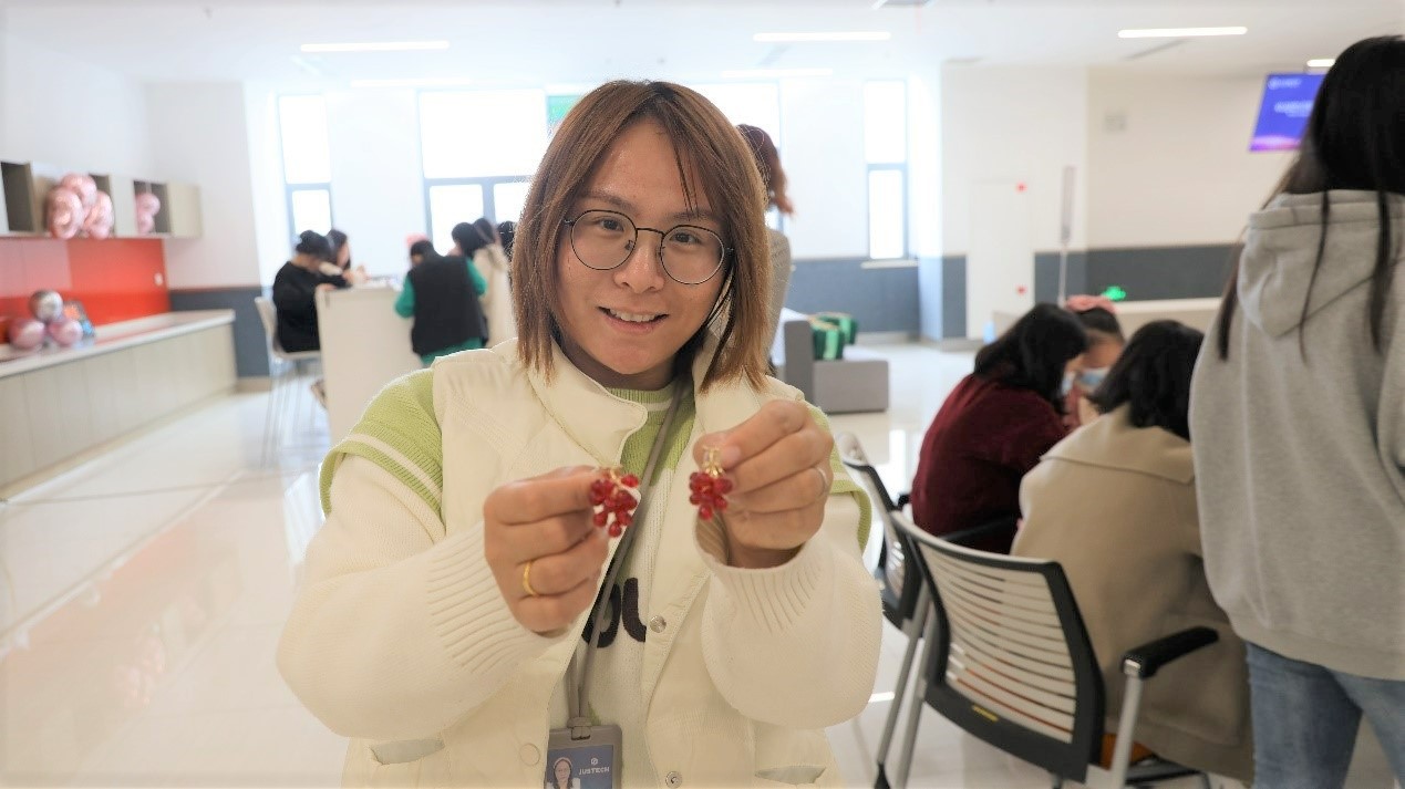 制作完成后,各位“匠人”面對鏡頭興奮地炫耀起了自己的成品。精巧、充滿心意的飾品不僅為今天這個特殊的日子增添了儀式感,也為這個春日填上了一抹溫柔絢麗的色彩。送給自己,或是送給家人朋友,這份精心的手作都能帶去我們最美麗的祝福。